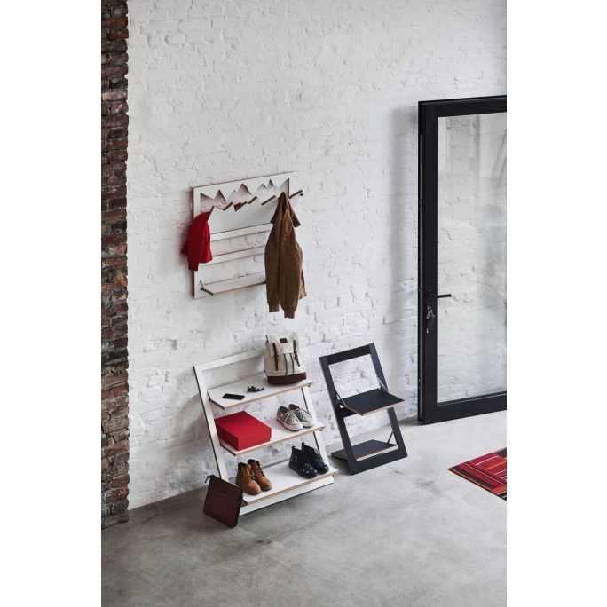 Mit dem spektakulären Klappstuhl FLÄPPS MATT SCHWARZ des Berliner Unternehmens AMBIVALENZ legen Sie sich ein erstaunlich bequemes Sitzmöbel mit ausgeklügelter Funktionalität zu. Ob als Esszimmerstuhl, gelegentlichem Gästestuhl, Bild an der Wand, oder auch mal als Nachttisch in Ihrem Schlafzimmer, der Fläpps Klappstuhl zieht einerseits mit Purismus, ja sogar Minimalismus, andererseits mit designstarken Motiven und pfiffiger Technik alle Blicke auf sich. Der Stuhl besteht aus Birkensperrholz und dem Mechanismus aus Edelstahl. Dabei verbirgt der nur 20mm starke Klappstuhl FLÄPPS eine komplexe Technik. Eine innere Mechanik lässt Fuß- und Sitz-Teil synchron mit einem Handgriff ein- und ausgleiten und die flexible Rückenlehne und das angenehme Schwingen machen FLÄPPS zu einem überraschend bequemen Klappstuhl (-Freischwinger). Räume sind nicht zu klein – einige Möbel sind einfach nur unpassend! Die System-Möbel von AMBIVALENZ geben Ihnen die Freiheit sich nicht festlegen zu müssen. Aus der Serie FLÄPPS erhalten Sie platzsparende Design-Möbel wie z. B. Regale, Tische, Stühle und Garderoben, welche unendliche Kombinationsmöglichkeiten bieten für ein maximal flexibles und mobiles Leben. Nur in Benutzung zeigen sich die Produkte als spektakuläre Design Möbel. Ungenutzt verschwinden sie gänzlich oder werden zu kunstvoller Deko an der Wand. Mit dem Design-Klappstuhl FLÄPPS haben Sie immer einen Ersatzstuhl parat! Oder Sie stellen sich Ihre komplette Essgruppe mit MATT SCHWARZ oder in Kombination ( FÄPPS ist aktuell in über 20 Designs erhältlich ) bunt mit diesen praktischen Esszimmerstühlen von AMBIVALENZ zusammen – platzsparend und spektakulär stylish!