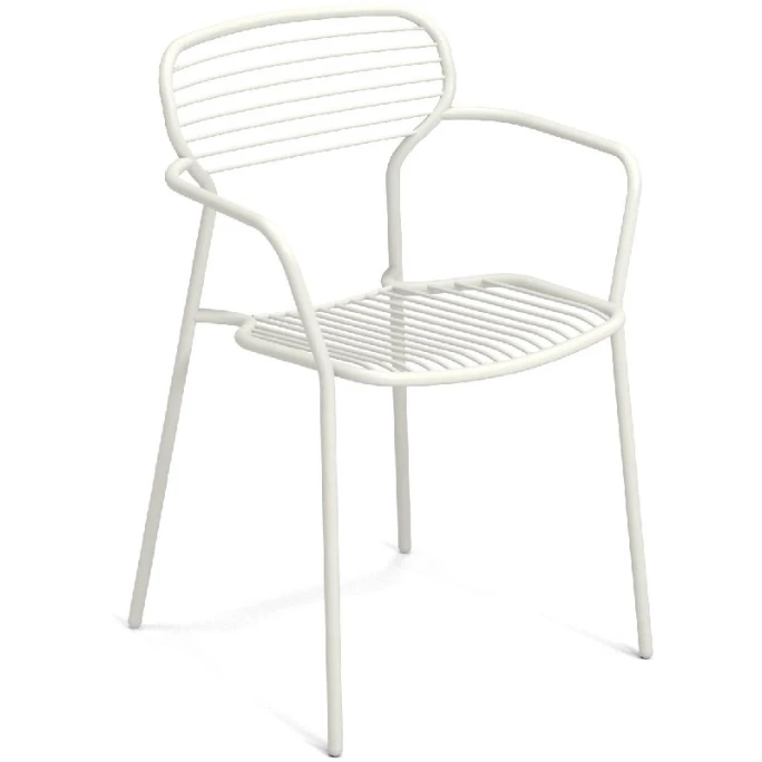 Mit dem extravaganten Armlehnstuhl-Set APERO von emu setzen Sie überall dekorative Akzente. Das geschmackvolle Set besteht aus vier Stühlen mit praktischen Armlehnen und wurde von dem Designer Martin Drechsel für emu entworfen. Bei dieser Kollektion wird das typische Design des deutschen Holzstuhls gekonnt und zeitgenössisch neu interpretiert. Dank des Knowhows von emu bei der Metallverarbeitung präsentieren sich Sitzfläche und Rückenlehne aus Draht ästhetisch leicht. Die Stühle haben eine durchgehend grazile Silhouette, bei welcher das Licht mit den waagrechten und senkrechten Linien spielt und ein interessantes Muster aus Streifen sowie Quadraten auf die Oberflächen projiziert. Aufgrund der minimalistischen und graphischen Form passen sich die Sitzmöbel diskret jeder Umgebung und jedem Stil an. Die formschönen Stühle sind mit vier praktischen Beinen ausgestattet und haben dadurch einen sicheren sowie stabilen Stand. Wir bieten Ihnen die innovativen Sitzmöbel aus der Serie APERO in vielen unterschiedlichen Farbvarianten an. Sie können hierzu auch passende Stühle ohne Armlehnen und Barhocker aus dieser Serie in unserem AMBIENDO Shop erwerben. Machen Sie es sich mit dem Armlehnstuhl 4er Set APERO von emu gemütlich!
