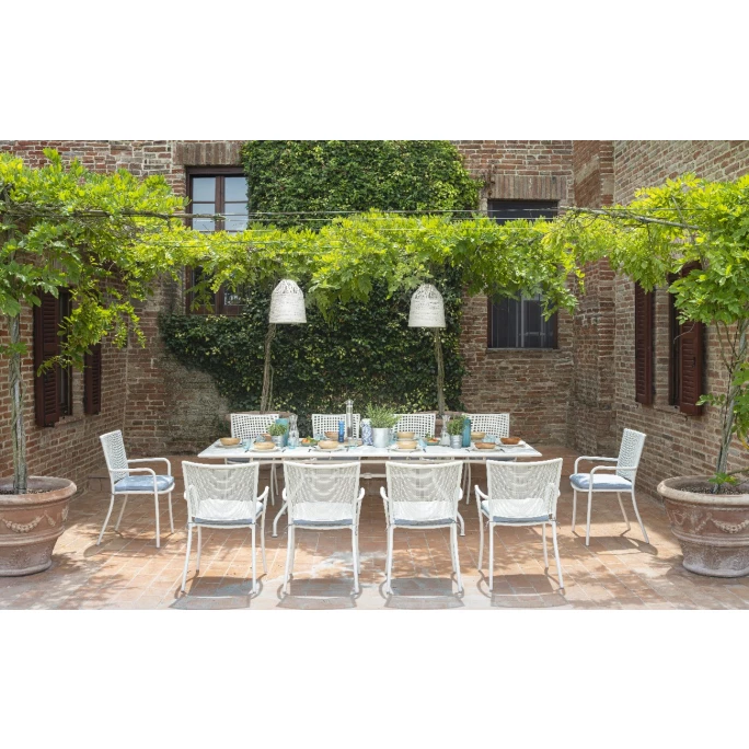 Mit dem stilvollen Armlehnstuhl-Set ATHENA von emu setzen Sie überall dekorative Akzente. Das geschmackvolle Set besteht aus vier Stühlen mit Armlehnen im klassischen Design. Die Sitzmöbel überzeugen dabei durch die moderne, geschwungene Formgebung und die ergonomischen Sitzflächen. Die robusten Stühle sind aus pulverbeschichtetem Stahl gefertigt und praktischerweise stapelbar, wodurch sie platzsparend verstaut werden können. Sie bieten einen angenehmen Sitzkomfort und können vielseitig verwendet werden. Die Sitzmöbel sind zudem mit vier praktischen Beinen ausgestattet und haben dadurch einen sicheren sowie stabilen Stand. Wir bieten Ihnen die innovativen Stühle aus der Serie ATHENA in unserem AMBIENDO Shop in unterschiedlichen Farbvarianten an. Machen Sie es sich mit dem Armlehnstuhl 4er Set ATHENA von emu auf Ihrer Terrasse, dem Balkon oder im Garten gemütlich!