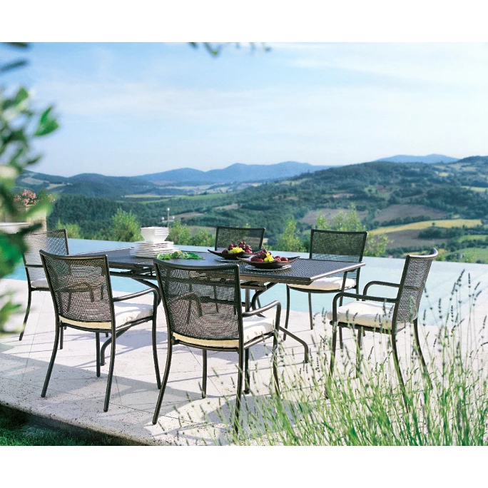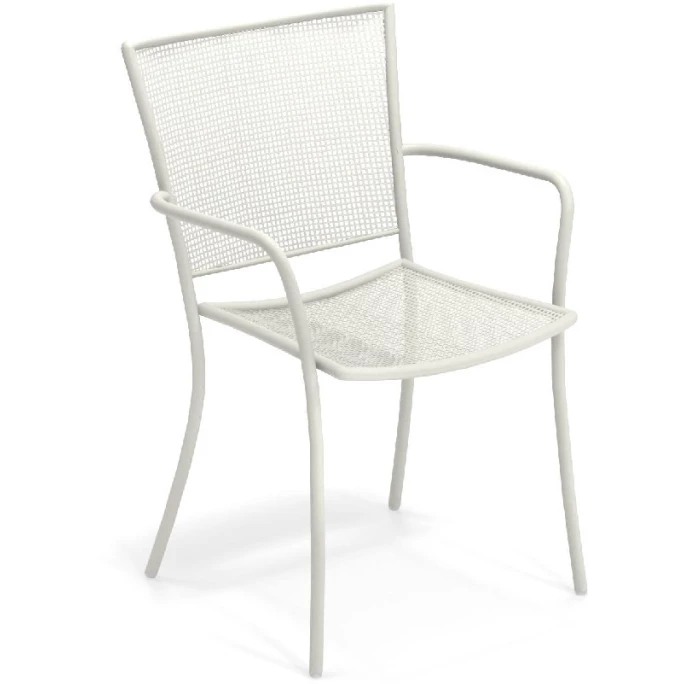 Mit dem stilvollen Armlehnstuhl-Set ATHENA von emu setzen Sie überall dekorative Akzente. Das geschmackvolle Set besteht aus vier Stühlen mit Armlehnen im klassischen Design. Die Sitzmöbel überzeugen dabei durch die moderne, geschwungene Formgebung und die ergonomischen Sitzflächen. Die robusten Stühle sind aus pulverbeschichtetem Stahl gefertigt und praktischerweise stapelbar, wodurch sie platzsparend verstaut werden können. Sie bieten einen angenehmen Sitzkomfort und können vielseitig verwendet werden. Die Sitzmöbel sind zudem mit vier praktischen Beinen ausgestattet und haben dadurch einen sicheren sowie stabilen Stand. Wir bieten Ihnen die innovativen Stühle aus der Serie ATHENA in unserem AMBIENDO Shop in unterschiedlichen Farbvarianten an. Machen Sie es sich mit dem Armlehnstuhl 4er Set ATHENA von emu auf Ihrer Terrasse, dem Balkon oder im Garten gemütlich!