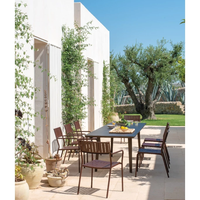 Mit dem Armlehnstuhl-Set BRIDGE von emu setzen Sie überall geschmackvolle Akzente. Das minimalistische Set besteht aus vier klassischen Stühlen mit praktischen Armlehnen ohne Hang zur Extravaganz. Die Sitzmöbel zeichnen sich dabei durch Ihre schlichte Optik und die funktionale Linienführung aus, wodurch sie sich perfekt für den Outdoorbereich eignen. Die Stühle bieten einen angenehmen Sitzkomfort und können vielseitig verwendet werden. Sie sind aus Stahl gefertigt und mit vier Beinen ausgestattet. Dadurch haben sie einen sicheren und stabilen Stand. Wir bieten Ihnen die modernen Sitzmöbel aus der Serie BRIDGE in verschiedenen Farbvarianten an. Sie können hierzu auch passende Armlehnstühle und Barhocker aus dieser Serie in unserem AMBIENDO Shop erwerben. Machen Sie es sich mit dem Armlehnstuhl 4er Set BRIDGE von emu gemütlich und verleihen Sie Ihrer Terrasse eine stilvolle Note!