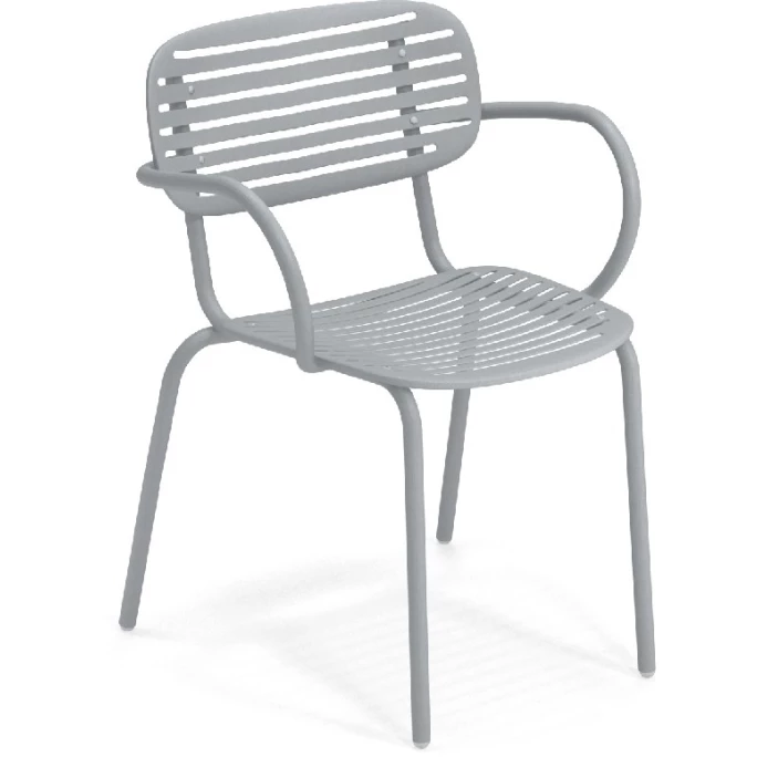 Mit dem schlichten Armlehnstuhl-Set MOM von emu setzen Sie überall dekorative Akzente. Das geschmackvolle Set besteht aus vier Stühlen mit praktischen Armlehnen und wurde von dem Designer Florent Coirier, der sich von den traditionellen, japanischen Suiban Tabletts inspirieren ließ, für emu entworfen. Das Stuhlgestell besteht komplett aus Stahlrohren Fe360, während die Sitzfläche und die Rückenlehne, die sich durch ein besonderes Design auszeichnen, aus tiefgezogenem verzinktem Stahlblech bestehen. Die Beschichtung ist aus Emu-Coat (Kataphorese + Lackierung) gefertigt. Die Stühle bieten einen angenehmen Sitzkomfort und können vielseitig verwendet werden. Sie sind mit vier praktischen Beinen ausgestattet und haben dadurch einen sicheren sowie stabilen Stand. Wir bieten Ihnen die zeitlosen Sitzmöbel aus der Serie MOM in vielen unterschiedlichen Farbvarianten an. Sie können hierzu auch passende Stühle ohne Armlehnen aus dieser Serie in unserem AMBIENDO Shop erwerben. Machen Sie es sich mit dem Armlehnstuhl 4er Set MOM von emu gemütlich!