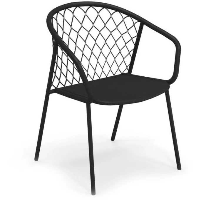 Mit dem stilvollen Armlehnstuhl-Set NEF von emu setzen Sie überall dekorative Akzente. Das geschmackvolle Set besteht aus zwei Stühlen und wurde vom Designer Patrick Norguet für emu entworfen. Diese Kollektion lehnt sich an die graphische Idee der Montgolfieren an und vereint eklektischen Stil sowie visuelle Leichtigkeit in einer einzigen Struktur. Hierbei sticht besonders die ungewöhnliche Rückenlehne, welche aus einem Flechtwerk von Polyesterschnüren gefertigt wurde, heraus. Dies verleiht den Sitzmöbeln ein natürliches Gefühl von Komfort und Behaglichkeit. Die Stühle sind mit vier praktischen Beinen ausgestattet und haben dadurch einen sicheren sowie stabilen Stand. Wir bieten Ihnen die außergewöhnlichen Sitzmöbel aus der Serie NEF in verschiedenen Farbvarianten an. Sie können hierzu auch den passenden Loungesessel aus dieser Serie in unserem AMBIENDO Shop erwerben. Machen Sie es sich mit dem Armlehnstuhl 2er Set NEF von emu gemütlich!