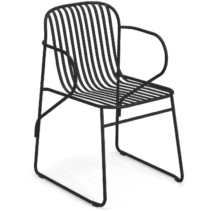 Mit dem modernen Armlehnstuhl-Set RIVIERA von emu setzen Sie überall dekorative Akzente. Das kreative Set besteht aus vier formschönen Stühlen mit praktischen Armlehnen und wurde von dem Designduo LucidiPevere für emu entworfen. Die Sitzmöbel sind komplett geschweißt und bestehen aus Rohren sowie abgerundeten Stangen (Halbmandelform) aus Stahl (Fe360). Die Beschichtung besteht aus Emu-Coat (Kataphorese + Lackierung). Die Stühle zeichnen sich dabei durch das nüchterne und raffinierte Design aus. Die Möbel bieten einen angenehmen Sitzkomfort und können vielseitig verwendet werden. Sie sind mit praktischen Kufen ausgestattet und sorgen für einen sicheren sowie stabilen Stand. Wir bieten Ihnen die innovativen Sitzmöbel aus der Serie RIVIERA in verschiedenen Farbvarianten an. Sie können hierzu auch passende Stühle ohne Armlehnen und Barhocker aus dieser Serie in unserem AMBIENDO Shop erwerben. Machen Sie es sich mit dem Armlehnstuhl 4er Set RIVIERA von emu im Outdoorbereich gemütlich!