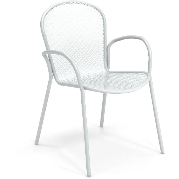 Mit dem stilvollen Armlehnstuhl-Set RONDA XS von emu setzen Sie überall dekorative Akzente. Hierbei handelt es sich um die kompaktere Variante des RONDA Armlehnstuhls, der seit vielen Jahren ein absoluter Klassiker von emu ist. Da die Sitzmöbel weniger Platz beanspruchen als die große Schwester RONDA eignen sie sich auch z. B. für einen kleinen Balkon oder eine kleinere Terrasse. Das puristische Set besteht aus vier Stühlen mit praktischen Armlehnen, welche sich durch Ihre schlichten und eleganten Linien auszeichnen. Die Struktur besteht aus Eisenrohr und die Rückenlehnen- sowie Sitzflächen sind aus vorverzinktem Streckmetall in fein gelöcherter Optik gefertigt. Die Stühle bieten dabei einen angenehmen Sitzkomfort und können vielseitig verwendet werden. Sie sind mit vier Beinen ausgestattet und haben dadurch einen sicheren sowie stabilen Stand. Wir bieten Ihnen die modernen Sitzmöbel aus der Serie RONDA XS in verschiedenen Farbvarianten an. Sie können hierzu auch passende Stühle ohne Armlehnen und Barhocker aus dieser Serie in unserem AMBIENDO Shop erwerben. Machen Sie es sich mit dem Armlehnstuhl 4er Set RONDA XS von emu gemütlich!