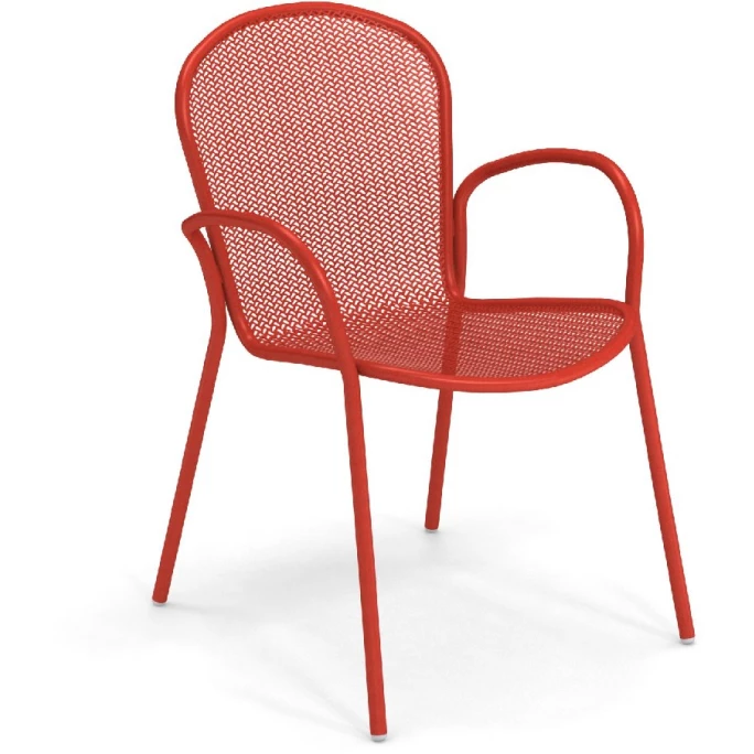 Mit dem stilvollen Armlehnstuhl-Set RONDA XS von emu setzen Sie überall dekorative Akzente. Hierbei handelt es sich um die kompaktere Variante des RONDA Armlehnstuhls, der seit vielen Jahren ein absoluter Klassiker von emu ist. Da die Sitzmöbel weniger Platz beanspruchen als die große Schwester RONDA eignen sie sich auch z. B. für einen kleinen Balkon oder eine kleinere Terrasse. Das puristische Set besteht aus vier Stühlen mit praktischen Armlehnen, welche sich durch Ihre schlichten und eleganten Linien auszeichnen. Die Struktur besteht aus Eisenrohr und die Rückenlehnen- sowie Sitzflächen sind aus vorverzinktem Streckmetall in fein gelöcherter Optik gefertigt. Die Stühle bieten dabei einen angenehmen Sitzkomfort und können vielseitig verwendet werden. Sie sind mit vier Beinen ausgestattet und haben dadurch einen sicheren sowie stabilen Stand. Wir bieten Ihnen die modernen Sitzmöbel aus der Serie RONDA XS in verschiedenen Farbvarianten an. Sie können hierzu auch passende Stühle ohne Armlehnen und Barhocker aus dieser Serie in unserem AMBIENDO Shop erwerben. Machen Sie es sich mit dem Armlehnstuhl 4er Set RONDA XS von emu gemütlich!