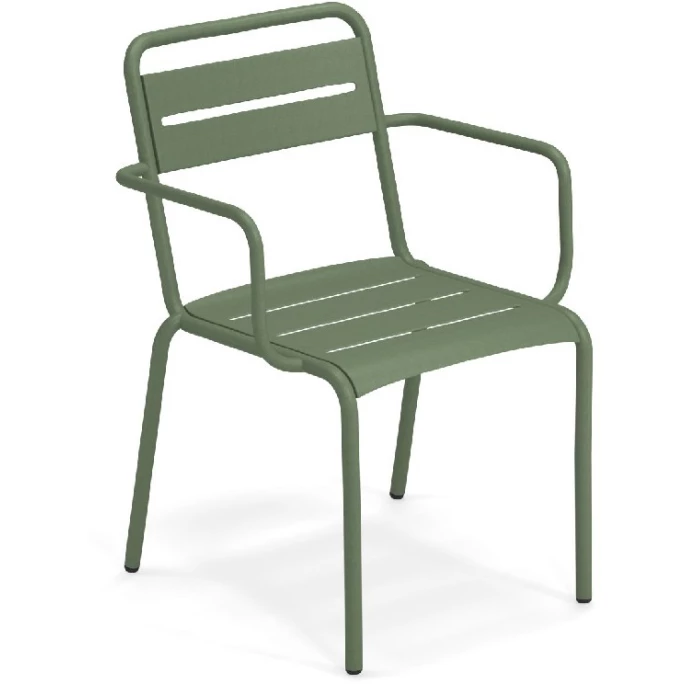 Die Tische und Sitzmöbel aus der Kollektion STAR sind ein Evergreen von emu. Mit dem Armlehnstuhl-Set aus dieser Serie setzen Sie überall geschmackvolle Akzente. Das dekorative Set besteht aus zwei klassischen Stühlen mit praktischen Armlehnen im zeitlosen Design. Die Sitzmöbel zeichnen sich dabei durch Ihre schlichten Formen und weichen Linien aus. Die vielseitigen Stühle bieten einen angenehmen Sitzkomfort und eignen sich für unterschiedliche Situationen sowie verschiedene Räumlichkeiten. Sie sind aus Stahl gefertigt und mit vier Beinen ausgestattet. Dadurch haben sie einen sicheren und stabilen Stand. Wir bieten Ihnen die Sitzmöbel aus der informellen Serie STAR in vielen farbenfrohen Varianten an. Sie können hierzu auch passende Stühle, Barhocker, Loungesessel und Sitzbänke aus dieser Serie in unserem AMBIENDO Shop erwerben. Machen Sie es sich mit dem Armlehnstuhl 2er Set STAR von emu gemütlich und verleihen Sie Ihrer Terrasse eine besondere Note!