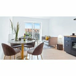 Beeindrucken Sie Ihre Gäste mit den skandinavischen gepolsterten House Nordic Geneve Stuhl 2er-Set. House Nordic ist eine dänische Einrichtungsmarke, die 2017 von Henrik Jørgensen gegründet wurde. Die Marke hat sich schnell zu einer bekannten skandinavischen Marke entwickelt. Erhältlich in nicht weniger als 27 Ländern, hauptsächlich in Europa. Die Marke bietet eine große Auswahl an Möbeln und Wohnaccessoires, bei denen Qualität an erster Stelle steht. House Nordic verleiht Ihrem Interieur das moderne und lässige Gefühl, das Sie oft im skandinavischen Design sehen. Das tolle Designer Stuhl-Set Geneve ist besonders bequem denn es hat eine ergonomisch geformte Sitzschale, welche auch längeres Sitzen super möglich macht. Geneve besteht aus einem hochwertigem Samtbezug mit Metallgestell und ist damit besonders pflegeleicht, denn es reicht die Stühle mit einem feuchten Tuch abzureiben. Fertig! Erfreuen Sie sich jeden Tag an der Qualität und dem schicken Design von Geneve aus dem Hause House Nordic!