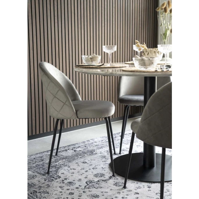 Beeindrucken Sie Ihre Gäste mit den skandinavischen gepolsterten House Nordic Geneve Stuhl 2er-Set. House Nordic ist eine dänische Einrichtungsmarke, die 2017 von Henrik Jørgensen gegründet wurde. Die Marke hat sich schnell zu einer bekannten skandinavischen Marke entwickelt. Erhältlich in nicht weniger als 27 Ländern, hauptsächlich in Europa. Die Marke bietet eine große Auswahl an Möbeln und Wohnaccessoires, bei denen Qualität an erster Stelle steht. House Nordic verleiht Ihrem Interieur das moderne und lässige Gefühl, das Sie oft im skandinavischen Design sehen. Das tolle Designer Stuhl-Set Geneve ist besonders bequem denn es hat eine ergonomisch geformte Sitzschale, welche auch längeres Sitzen super möglich macht. Geneve besteht aus einem hochwertigem Samtbezug mit Metallgestell und ist damit besonders pflegeleicht, denn es reicht die Stühle mit einem feuchten Tuch abzureiben. Fertig! Erfreuen Sie sich jeden Tag an der Qualität und dem schicken Design von Geneve aus dem Hause House Nordic!