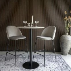 Beeindrucken Sie Ihre Gäste mit den skandinavischen gepolsterten House Nordic Lausanne Barhocker 2er-Set. House Nordic ist eine dänische Einrichtungsmarke, die 2017 von Henrik Jørgensen gegründet wurde. Die Marke hat sich schnell zu einer bekannten skandinavischen Marke entwickelt. Erhältlich in nicht weniger als 27 Ländern, hauptsächlich in Europa. Die Marke bietet eine große Auswahl an Möbeln und Wohnaccessoires, bei denen Qualität an erster Stelle steht. House Nordic verleiht Ihrem Interieur das moderne und lässige Gefühl, das Sie oft im skandinavischen Design sehen. Das tolle Designer Stuhl-Set Lausanne ist besonders bequem denn es hat eine ergonomisch geformte Sitzschale, welche auch längeres Sitzen super möglich macht. Lausanne besteht aus einem hochwertigen Samtbezug mit Metallgestell und ist damit besonders pflegeleicht, denn es reicht die Stühle mit einem feuchten Tuch abzureiben. Fertig! Erfreuen Sie sich jeden Tag an der Qualität und dem schicken Design von Lausanne aus dem Hause House Nordic!