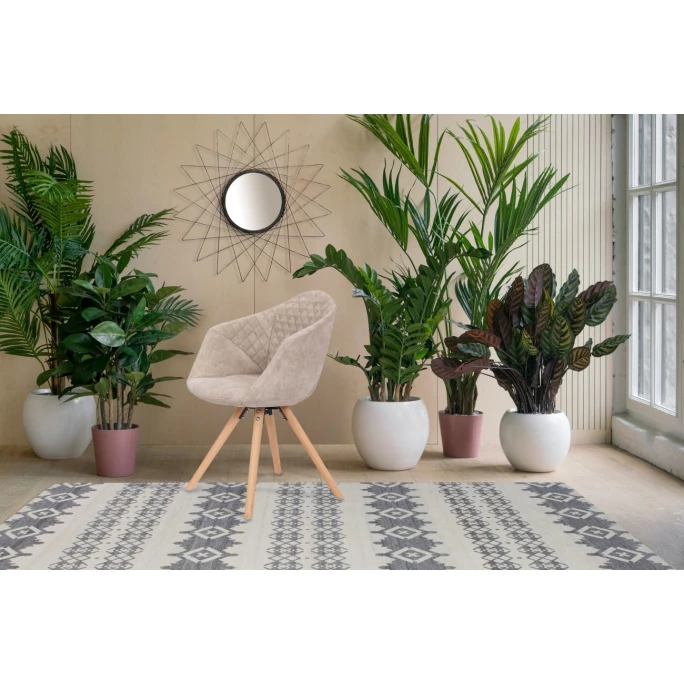Der Stuhl Chadwick aus dem Hause Kayoom lässt Gemütlichkeit in Ihre vier Wände einziehen. Er überzeugt nicht nur durch seine abgerundete Form mit Armlehnen und Rückenlehne, sondern vor allem durch die weiche Polsterung und den hohen Sitzkomfort. Auch bei längeren Abenden in geselliger Runde bleibt er äußerst bequem. Die schlichte Farbe des Stoffbezugs harmoniert mit den hellen Buchenholz-Stuhlbeinen und lässt sich vor allem in moderne Einrichtungen gut integrieren. Die leicht abgespreizten Stuhlbeine geben dem Stuhl die notwendige Stabilität und festen Stand. Bestellen Sie den Komfort-Stuhl jetzt im 2er-Set und schaffen Sie eine gemütliche Sitzecke in Ihrem Esszimmer. Bestellen Sie das hochwertige Stuhl-Set Chadwick von Kayoom und erfreuen Sie sich jeden Tag aufs Neue an dem schicken Möbelstück!