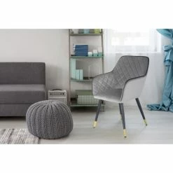 Dieser Stuhl bringt ein edles Ambiente mit sich. Bereits optisch vermittelt der Design-Stuhl Luxus und Glamour. Der samtige Velvet-Bezug sorgt durch das unifarbene Design mit farblich abgesetztem Rand für eine ruhige Atmosphäre und gleichzeitig für ein elegantes Erscheinungsbild. Stilvolle Ziernähte verleihen der Rückenlehne und den Armlehnen ein königliches Design, das perfekt mit der samtigen Haptik harmoniert. Stabile Stuhlbeine aus Metall mit glanzvollen Füßen vervollständigen das Gesamtbild dieses Möbelstücks. Der Kayoom STUHL Amino 525 sieht jedoch nicht nur ansprechend aus, sondern ist auch sehr funktional. Die weich gepolsterte Sitzfläche und die Polsterung in Rückenlehne und Armlehnen sorgt für ein angenehmes Sitzgefühl, bei dem Sie sich entspannen und wohlfühlen können. Nehmen Sie sich ein gutes Buch, stützen Sie Ihre Arme auf den Armlehnen ab und genießen Sie den Sitzkomfort beim Schmökern. Eine Stehlampe kann Ihnen das passende Licht spenden. Aber auch eine Tischlampe, platziert auf einem Beistelltisch, schafft eine angenehme Beleuchtung und bietet durch den Tisch auch gleichzeitig Ablagefläche für Ihr Buch oder ein leckeres Heißgetränk. Schaffen Sie sich Ihre persönliche Wohlfühlzone in Wohnzimmer, Schlafzimmer oder Esszimmer und genießen Sie das gemütliche Ambiente. Neben den heimischen Wohnräumen ist der Stuhl auch für Geschäftsräume und Wartebereiche gut geeignet und schafft bei Gästen und Kunden einen positiven ersten Eindruck.