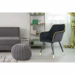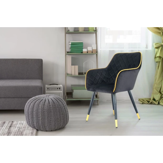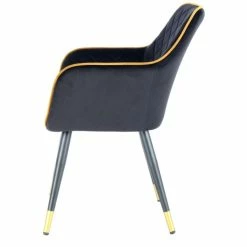 Dieser Stuhl bringt ein edles Ambiente mit sich. Bereits optisch vermittelt der Design-Stuhl Luxus und Glamour. Der samtige Velvet-Bezug sorgt durch das unifarbene Design mit farblich abgesetztem Rand für eine ruhige Atmosphäre und gleichzeitig für ein elegantes Erscheinungsbild. Stilvolle Ziernähte verleihen der Rückenlehne und den Armlehnen ein königliches Design, das perfekt mit der samtigen Haptik harmoniert. Stabile Stuhlbeine aus Metall mit glanzvollen Füßen vervollständigen das Gesamtbild dieses Möbelstücks. Der Kayoom STUHL Amino 525 sieht jedoch nicht nur ansprechend aus, sondern ist auch sehr funktional. Die weich gepolsterte Sitzfläche und die Polsterung in Rückenlehne und Armlehnen sorgt für ein angenehmes Sitzgefühl, bei dem Sie sich entspannen und wohlfühlen können. Nehmen Sie sich ein gutes Buch, stützen Sie Ihre Arme auf den Armlehnen ab und genießen Sie den Sitzkomfort beim Schmökern. Eine Stehlampe kann Ihnen das passende Licht spenden. Aber auch eine Tischlampe, platziert auf einem Beistelltisch, schafft eine angenehme Beleuchtung und bietet durch den Tisch auch gleichzeitig Ablagefläche für Ihr Buch oder ein leckeres Heißgetränk. Schaffen Sie sich Ihre persönliche Wohlfühlzone in Wohnzimmer, Schlafzimmer oder Esszimmer und genießen Sie das gemütliche Ambiente. Neben den heimischen Wohnräumen ist der Stuhl auch für Geschäftsräume und Wartebereiche gut geeignet und schafft bei Gästen und Kunden einen positiven ersten Eindruck.
