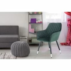 Dieser Stuhl bringt ein edles Ambiente mit sich. Bereits optisch vermittelt der Design-Stuhl Luxus und Glamour. Der samtige Velvet-Bezug sorgt durch das unifarbene Design mit farblich abgesetztem Rand für eine ruhige Atmosphäre und gleichzeitig für ein elegantes Erscheinungsbild. Stilvolle Ziernähte verleihen der Rückenlehne und den Armlehnen ein königliches Design, das perfekt mit der samtigen Haptik harmoniert. Stabile Stuhlbeine aus Metall mit glanzvollen Füßen vervollständigen das Gesamtbild dieses Möbelstücks. Der Kayoom STUHL Amino 625 sieht jedoch nicht nur ansprechend aus, sondern ist auch sehr funktional. Die weich gepolsterte Sitzfläche und die Polsterung in Rückenlehne und Armlehnen sorgt für ein angenehmes Sitzgefühl, bei dem Sie sich entspannen und wohlfühlen können. Nehmen Sie sich ein gutes Buch, stützen Sie Ihre Arme auf den Armlehnen ab und genießen Sie den Sitzkomfort beim Schmökern. Eine Stehlampe kann Ihnen das passende Licht spenden. Aber auch eine Tischlampe, platziert auf einem Beistelltisch, schafft eine angenehme Beleuchtung und bietet durch den Tisch auch gleichzeitig Ablagefläche für Ihr Buch oder ein leckeres Heißgetränk. Schaffen Sie sich Ihre persönliche Wohlfühlzone in Wohnzimmer, Schlafzimmer oder Esszimmer und genießen Sie das gemütliche Ambiente. Neben den heimischen Wohnräumen ist der Stuhl auch für Geschäftsräume und Wartebereiche gut geeignet und schafft bei Gästen und Kunden einen positiven ersten Eindruck.