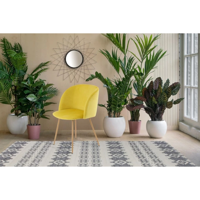Dieses Set zweier modernder Design-Stühle ist auffällig schön und angenehm komfortabel. Durch die Trendfarbe und den samtweichen Stoffbezug wird der Stuhl zum Hingucker in jedem Wohnbereich und schafft eine wohnliche Atmosphäre. Besonders in modernen, skandinavischen oder Retro-Einrichtungen lässt sich das Stuhl-Set gut integrieren. Kombiniert mit einem modernen Teppich im gleichen Stil, kreieren Sie ein individuelles Raumambiente. Vier stabile Stuhlbeine aus Metall geben dem Stuhl stabilen Stand. Die Beine wurden in Holz-Optik veredelt, sodass sie optisch gut mit dem Stoffbezug harmonieren. Für Komfort sorgen die rundliche Sitzschale und die Rückenlehne sowie der samtige Bezug. Das Kayoom STUHL Celina 110 2er-Set kann mit bis zu ca. 150 kg belastet werden.