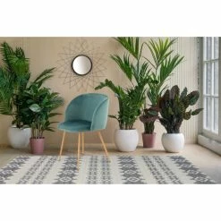 Dieses Set zweier modernder Design-Stühle ist auffällig schön und angenehm komfortabel. Durch die Trendfarbe und den samtweichen Stoffbezug wird der Stuhl zum Hingucker in jedem Wohnbereich und schafft eine wohnliche Atmosphäre. Besonders in modernen, skandinavischen oder Retro-Einrichtungen lässt sich das Stuhl-Set gut integrieren. Kombiniert mit einem modernen Teppich im gleichen Stil, kreieren Sie ein individuelles Raumambiente. Vier stabile Stuhlbeine aus Metall geben dem Stuhl stabilen Stand. Die Beine wurden in Holz-Optik veredelt, sodass sie optisch gut mit dem Stoffbezug harmonieren. Für Komfort sorgen die rundliche Sitzschale und die Rückenlehne sowie der samtige Bezug. Das Kayoom STUHL Celina 110 2er-Set kann mit bis zu ca. 150 kg belastet werden.