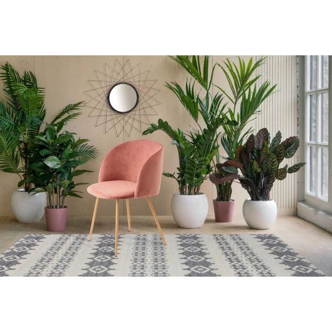 Dieses Set zweier modernder Design-Stühle ist auffällig schön und angenehm komfortabel. Durch die Trendfarbe und den samtweichen Stoffbezug wird der Stuhl zum Hingucker in jedem Wohnbereich und schafft eine wohnliche Atmosphäre. Besonders in modernen, skandinavischen oder Retro-Einrichtungen lässt sich das Stuhl-Set gut integrieren. Kombiniert mit einem modernen Teppich im gleichen Stil, kreieren Sie ein individuelles Raumambiente. Vier stabile Stuhlbeine aus Metall geben dem Stuhl stabilen Stand. Die Beine wurden in Holz-Optik veredelt, sodass sie optisch gut mit dem Stoffbezug harmonieren. Für Komfort sorgen die rundliche Sitzschale und die Rückenlehne sowie der samtige Bezug. Das Kayoom STUHL Celina 110 2er-Set kann mit bis zu ca. 150 kg belastet werden.