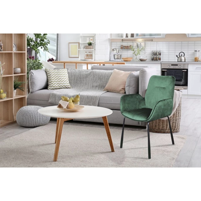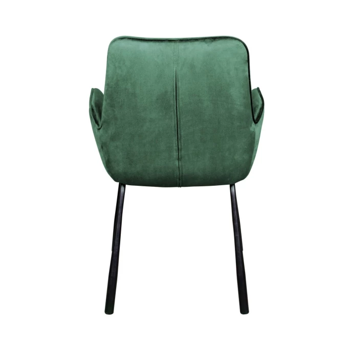 Dieser Stuhl überzeugt durch seinen schlichten und dennoch eleganten Look. Dank des unaufdringlichen Designs kann der Stuhl in nahezu jeden Einrichtungsstil integriert werden, ohne der bestehenden Einrichtung die Show zu stehlen. Er fügt sich harmonisch in das bestehende Raumbild ein und bietet gleichzeitig eine gemütliche Sitzgelegenheit. Die gepolsterte Sitzfläche ist von einem samtigen Bezug umgeben, der dem Stuhl ein elegantes Aussehen verleiht. Eine Ziernaht in der Rückenlehne peppt das schlichte Design etwas auf und sorgt in Verbindung mit den Armlehnen für einen angesagten Retro-Charakter. Solide Beine aus Metall runden das Gesamtbild des Stuhls ab und sorgen für einen stabilen Stand. Genießen Sie das angenehme Sitzgefühl mit Ihrem neuen Esszimmerstuhl.