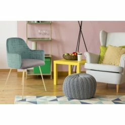 Mit diesem Stuhl erhalten Sie hohen Sitzkomfort. Ein samtweicher Stoffbezug umhüllt die Sitzfläche mit dicker Polsterung. Auch längeres Sitzen wird dadurch zu einer angenehmen Angelegenheit. Durch die Rückenlehne und die Armlehnen, die ebenfalls mit einem Stoffbezug versehen sind, erhöht sich der Komfort zusätzlich. Seinen besonderen Look erhält der Design-Stuhl durch die zweigeteilte Optik. Sitzschale und Sitzkissen sind in unterschiedlichen Farben und Materialstrukturen gehalten. Während das Sitzkissen unifarben und glatt ist, weist der Stoff der Lehnen eine leichte Struktur auf und sorgt für einen modernen Touch. Metallbeine in seitlicher Abspreizung machen die Materialzusammenstellung komplett und geben dem Kayoom STUHL Richard 525 stabilen Stand. Das exklusive Design ist besonders für moderne Wohnräume gut geeignet und kann durch die verschiedenen Farben in verschiedene Stile integriert werden. Nicht nur im Wohn- oder Esszimmer ist der gemütliche Stuhl ein Hingucker. Auch im Schlafzimmer oder im Flur kann der Design-Stuhl eingesetzt werden und beispielsweise als Ablage dienen. Ideal geeignet ist das Modell für Ihre ganz persönliche Leseecke. Durch den hohen Komfort können Sie sich, kombiniert mit einem kleinen Beistelltisch und einer stimmungsvollen Stehlampe, eine gemütliche Wohnfühlzone schaffen.