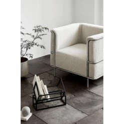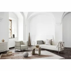 Der Modernist Lounge Chair von Kristina Dam Studio ist ein schicker und bequemer Sessel, der im Wohnzimmer genauso gut aussieht wie im Ess-, Arbeits- oder Schlafbereich. Das massive Edelstahlgestell von Modernist ist vor allem edel und elegant und ein wesentliches Designmerkmal des Bauhausstils. Das Polster folgt auf aparteste Weise den Rundungen des Edelstahlgestells und besteht aus strapazierfähigem Schaumstoff mit einem superweichen Bouclé-Bezug aus Viskose, Acryl, Wolle, Polyester, Flachs und Baumwolle. Durch die klare Formgebung, die schöne Struktur des Gewebes und die zurückhaltende Farbgebung passt der Kristina Dam Studio Sessel zu jeder zeitgemäßen Wohnraumeinrichtung und setzt besonders stillvolle Akzente in Ihrem Zuhause. Um die Polsterung optimal aussehen zu lassen und die Lebensdauer zu verlängern, sollten Sie den Modernist Lounge Sessel nicht ins direkte Sonnenlicht oder in die Nähe einer starken Wärmequelle stellen, da dies mit der Zeit zu Farbveränderungen im Stoff führen kann. Der Bezug kann nicht von der Polsterung abgenommen werden. Daher sollten Sie den Stoff von Zeit zu Zeit mit der Hand glätten, verschüttete Flüssigkeiten sofort mit einem saugfähigen Papier oder Tuch sanft abtupfen und Flecken schnell durch Trockenreinigung mit Tetrachlorethylen-PCE entfernen. Machen Sie sich mit dem tollen Modernist Lounge Chair von Kristina Dam Studio eine bequeme und designstarke Freude!
