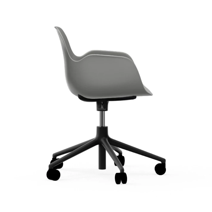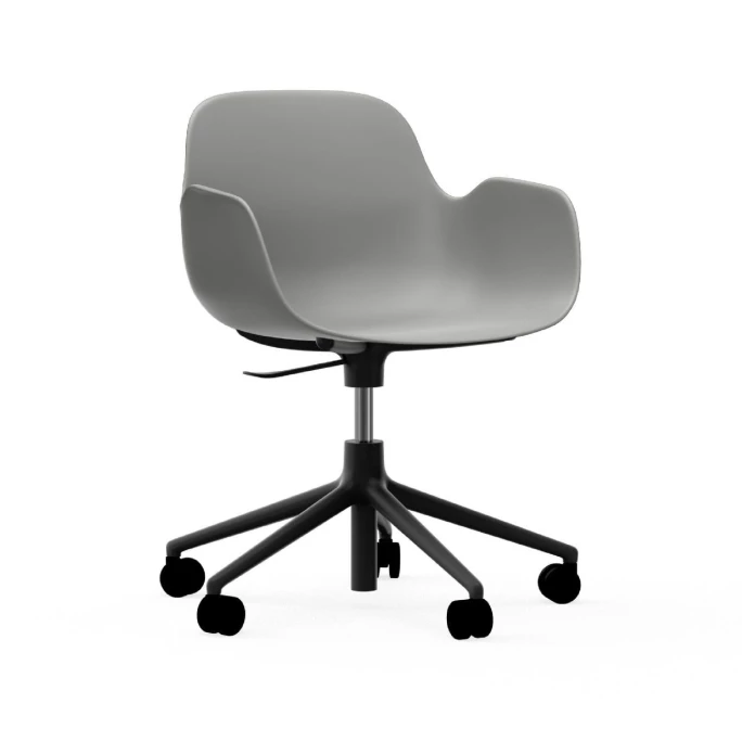 Formvollendetes Design und visiona?re Variationen: Das sind die Merkmale der Bestseller-Serie Form, die 2014 von Normann Copenhagen eingefu?hrt und seitdem fortlaufend erweitert wurde. Das neue Drehgestell aus Aluminium gibt dem Form Stuhl Swivel einen maskulinen und exklusiven Look und sorgt fu?r komfortable Bewegungsfreiheit. Der Stuhl eignet sich daher ausgezeichnet fu?r den Einsatz in zum Beispiel Besprechungsra?umen und Restaurants. Das Drehgestell umfasst die Stuhlschale mit vier schlanken Armen, die in der Mitte aufeinandertreffen und sich dann in fünf Stuhlbeine verzweigen. Das Drehgestell mit Ra?dern ist mit einer hochwertigen Gasfeder ausgestattet und fu?r Bu?roumgebungen eine a?sthetische und funktionelle Wahl. Das neue Gestell integriert sich harmonisch in die u?brigen Schalen-Designs der Form Serie. Normann Copenhagen und der Designer Simon Legald haben eine innovative und stilvolle Lo?sung entwickelt, bei der die Beine in vier gegossene Kunststoffelemente montiert werden, die sich perfekt an die Form der Sitzfla?che anpassen. Deshalb wirkt es beinahe so, als wu?rde das Gestell aus der Schale herauswachsen, und die Konstruktion ermo?glicht es, verschiedene Gestelltypen in den O?ffnungen zu montieren. Entdecken Sie die Kombinationsmöglichkeiten und bestellen Sie den hochwertigen Stuhl Form Swivel von Normann Copenhagen!