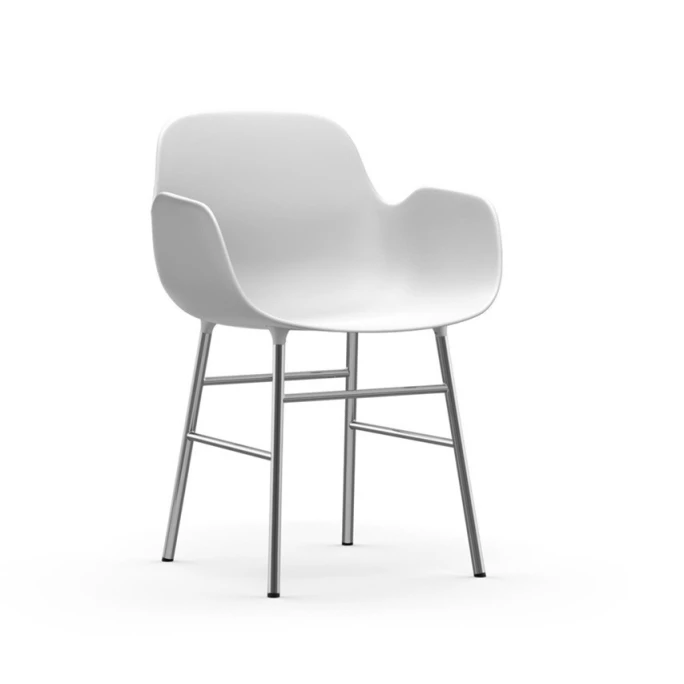 Beeindrucken Sie Ihre Gäste mit den skandinavischen Normann Copenhagen Form Armchair Stühlen. Der nahtlose & formvollendete Look der Form Stühle wurde designt vom dänischen Designer Simon Legald. Er schaffte eine Liaison aus robustem, puristischem Hartplastik, aus welcher die Sitzschale inklusive Armlehnen des Form Stuhls ist, und einem klassischen, vierbeinigen Unterbau aus verchromtem Stahl. Dadurch wird beim Normann Copenhagen Form Armchair Chrome Stuhl ein leichter Kontrast zwischen Sitzschale und Stuhlbeinen gesetzt, der verchromt sehr nordisch & puristisch wirkt. Der Designer-Stuhl Normann Copenhagen Form Armchair bietet einen hervorragenden, ergonomischen Halt für den Rücken und viel Freiraum für Ihre Füße. Die Sitzschale und Armlehnen sind aus einem Guss geschaffen. Durch all diese Facetten sind die Stühle der Form-Serie wahre Tausendsassa. Der Normann Copenhagen Form Armchair Chrome Stuhl kann sowohl als Bürostuhl, Esszimmerstuhl oder Beistellstuhl eingesetzt werden.