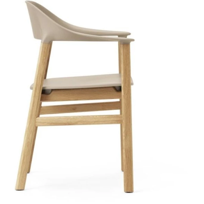 Sie lieben klassisches Design übersetzt in die Sprache des modernen Lebens? Dann ist die Herit Stuhlserie der dänischen Traditionsmarke Normann Copenhagen genau die Richtige für Sie! Von Simon Legald entworfen, ist das Erbe der dänischen Designtraditionen unübersehbar. Der Wunsch einen vielseitigen und zeitlosen Stuhl zu kreieren ist mit dem Herit Lehnstuhl mit Armlehnen gekonnt umgesetzt worden. Helles Eichenholz und Kunststoff harmonieren wunderbar miteinander und schaffen dabei ein robustes, pflegeleichtes und unkompliziertes Möbelstück. Die Formgebung ist dabei nicht dem Zufall überlassen, sondern folgt dem Körper und unterstützt so die richtige Sitzposition. Die Rückenpartie mit Armlehnen und die Sitzfläche sind aus Kunststoff und mit einem Schaumkern ausgeformt. Diese innovative Technik ermöglicht es, in den benötigten Bereichen eine Dicke zu erzeugen, um den besten Sitzkomfort zu erzielen und die geschwungenen Linien des Designs zu konstruieren. Herit mit Armlehnen ist in fünf verschiedenen Sitzschalenfarben und auch ohne Armlehnen und in einem dunklen Eichenfarbton erhältlich. Zeigen Sie Stil und begeistern Ihre Gäste mit dem schnörkellosen Design der Herit Stuhlkollektion von Normann Copenhagen.