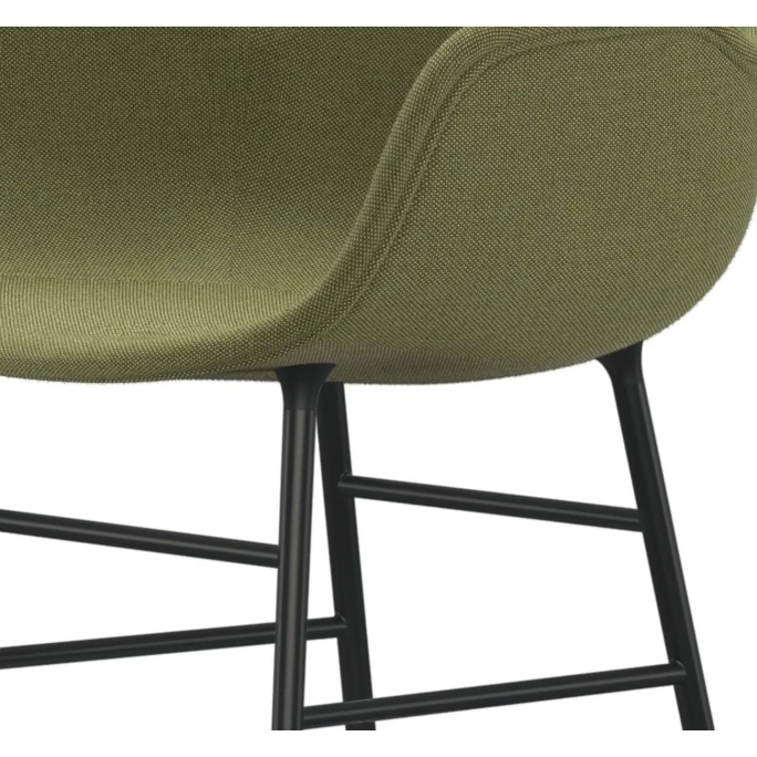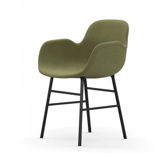 Beeindrucken Sie Ihre Gäste mit den skandinavischen gepolsterten Normann Copenhagen Form Chair Stühlen inklusive komfortablen Armlehnen. Der nahtlose & formvollendete Look der Form Stühle wurde designt vom dänischen Designer Simon Legald. Er schaffte eine Liaison aus robustem, gepolstertem Hartplastik, aus welcher die Sitzschale des Form Stuhls ist, und einem klassischen, vierbeinigen Unterbau aus lackiertem Stahl. Dadurch wird beim Normann Copenhagen Form Chair black Stuhl dank seiner schwarzen Stuhlbein-Lackierung ein leichter Kontrast zwischen Sitzschale und Stuhlbeinen gesetzt, der dank seiner nordischen Farben sehr stilvoll wirkt. Der Designer-Stuhl Normann Copenhagen Form Chair bietet einen hervorragenden, ergonomischen Halt für den Rücken und viel Freiraum für Ihre Füße. Durch all diese Facetten sind die Stühle der Form-Serie wahre Tausendsassa. Der Normann Copenhagen Form Chair Black Stuhl kann sowohl als Bürostuhl, Esszimmerstuhl oder Beistellstuhl eingesetzt werden.
