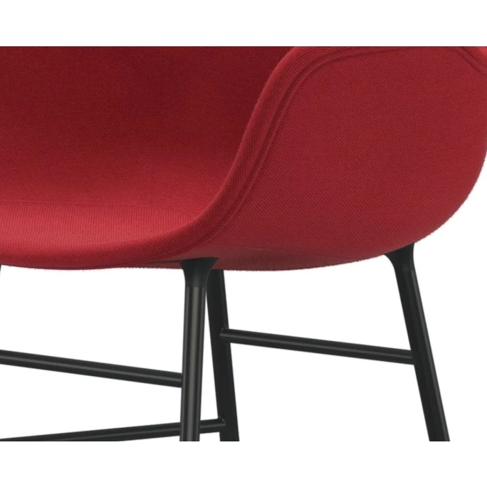 Beeindrucken Sie Ihre Gäste mit den skandinavischen gepolsterten Normann Copenhagen Form Chair Stühlen inklusive komfortablen Armlehnen. Der nahtlose & formvollendete Look der Form Stühle wurde designt vom dänischen Designer Simon Legald. Er schaffte eine Liaison aus robustem, gepolstertem Hartplastik, aus welcher die Sitzschale des Form Stuhls ist, und einem klassischen, vierbeinigen Unterbau aus lackiertem Stahl. Dadurch wird beim Normann Copenhagen Form Chair black Stuhl dank seiner schwarzen Stuhlbein-Lackierung ein leichter Kontrast zwischen Sitzschale und Stuhlbeinen gesetzt, der dank seiner nordischen Farben sehr stilvoll wirkt. Der Designer-Stuhl Normann Copenhagen Form Chair bietet einen hervorragenden, ergonomischen Halt für den Rücken und viel Freiraum für Ihre Füße. Durch all diese Facetten sind die Stühle der Form-Serie wahre Tausendsassa. Der Normann Copenhagen Form Chair Black Stuhl kann sowohl als Bürostuhl, Esszimmerstuhl oder Beistellstuhl eingesetzt werden.