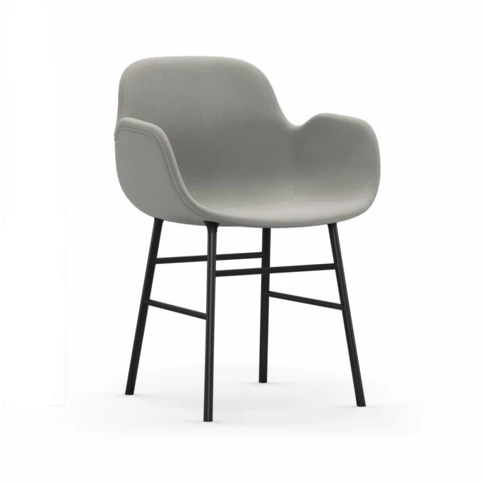 Beeindrucken Sie Ihre Gäste mit den skandinavischen gepolsterten Normann Copenhagen Form Chair Stühlen inklusive komfortablen Armlehnen. Der nahtlose & formvollendete Look der Form Stühle wurde designt vom dänischen Designer Simon Legald. Er schaffte eine Liaison aus robustem, gepolstertem Hartplastik, aus welcher die Sitzschale des Form Stuhls ist, und einem klassischen, vierbeinigen Unterbau aus lackiertem Stahl. Dadurch wird beim Normann Copenhagen Form Chair black Stuhl dank seiner schwarzen Stuhlbein-Lackierung ein leichter Kontrast zwischen Sitzschale und Stuhlbeinen gesetzt, der dank seiner nordischen Farben sehr stilvoll wirkt. Der Designer-Stuhl Normann Copenhagen Form Chair bietet einen hervorragenden, ergonomischen Halt für den Rücken und viel Freiraum für Ihre Füße. Durch all diese Facetten sind die Stühle der Form-Serie wahre Tausendsassa. Der Normann Copenhagen Form Chair Black Stuhl kann sowohl als Bürostuhl, Esszimmerstuhl oder Beistellstuhl eingesetzt werden.