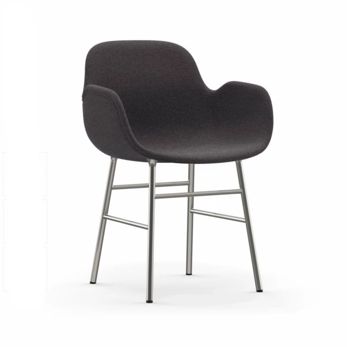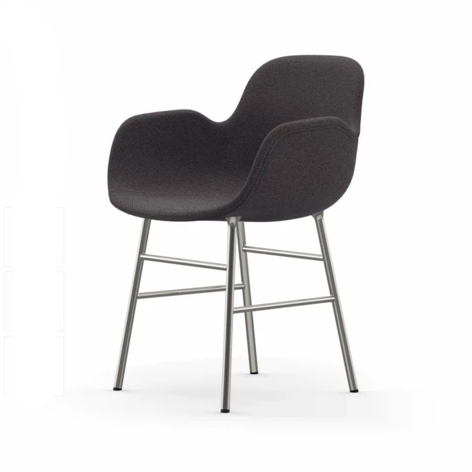 Beeindrucken Sie Ihre Gäste mit den skandinavischen gepolsterten Normann Copenhagen Form Chair Stühlen inklusive komfortablen Armlehnen. Der nahtlose & formvollendete Look der Form Stühle wurde designt vom dänischen Designer Simon Legald. Er schaffte eine Liaison aus robustem, gepolstertem Hartplastik, aus welcher die Sitzschale des Form Stuhls ist, und einem klassischen, vierbeinigen Unterbau aus verchromtem Stahl. Dadurch wird beim Normann Copenhagen Form Chair Chrome Stuhl ein leichter Kontrast zwischen Sitzschale und Stuhlbeinen gesetzt, der verchromt sehr nordisch & puristisch wirkt. Der Designer-Stuhl Normann Copenhagen Form Chair bietet einen hervorragenden, ergonomischen Halt für den Rücken und viel Freiraum für Ihre Füße. Durch all diese Facetten sind die Stühle der Form-Serie wahre Tausendsassa. Der Normann Copenhagen Form Chair Chrome Stuhl kann sowohl als Bürostuhl, Esszimmerstuhl oder Beistellstuhl eingesetzt werden.