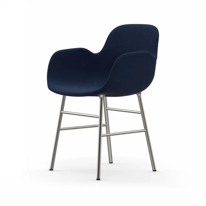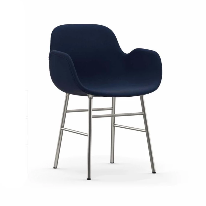 Beeindrucken Sie Ihre Gäste mit den skandinavischen gepolsterten Normann Copenhagen Form Chair Stühlen inklusive komfortablen Armlehnen. Der nahtlose & formvollendete Look der Form Stühle wurde designt vom dänischen Designer Simon Legald. Er schaffte eine Liaison aus robustem, gepolstertem Hartplastik, aus welcher die Sitzschale des Form Stuhls ist, und einem klassischen, vierbeinigen Unterbau aus verchromtem Stahl. Dadurch wird beim Normann Copenhagen Form Chair Chrome Stuhl ein leichter Kontrast zwischen Sitzschale und Stuhlbeinen gesetzt, der verchromt sehr nordisch & puristisch wirkt. Der Designer-Stuhl Normann Copenhagen Form Chair bietet einen hervorragenden, ergonomischen Halt für den Rücken und viel Freiraum für Ihre Füße. Durch all diese Facetten sind die Stühle der Form-Serie wahre Tausendsassa. Der Normann Copenhagen Form Chair Chrome Stuhl kann sowohl als Bürostuhl, Esszimmerstuhl oder Beistellstuhl eingesetzt werden.