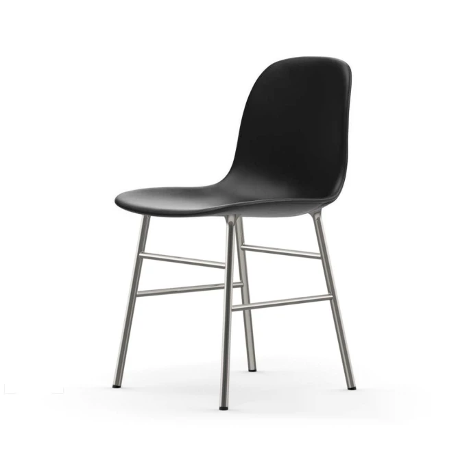 Beeindrucken Sie Ihre Gäste mit den skandinavischen gepolsterten Normann Copenhagen Form Chair Stühlen. Der nahtlose & formvollendete Look der Form Stühle wurde designt vom dänischen Designer Simon Legald. Er schaffte eine Liaison aus robustem, gepolstertem Hartplastik, aus welcher die Sitzschale des Form Stuhls ist, und einem klassischen, vierbeinigen Unterbau aus verchromtem Stahl. Dadurch wird beim Normann Copenhagen Form Chair Chrome Stuhl ein leichter Kontrast zwischen Sitzschale und Stuhlbeinen gesetzt, der verchromt sehr nordisch & puristisch wirkt. Der Designer-Stuhl Normann Copenhagen Form Chair bietet einen hervorragenden, ergonomischen Halt für den Rücken und viel Freiraum für Ihre Füße. Durch all diese Facetten sind die Stühle der Form-Serie wahre Tausendsassa. Der Normann Copenhagen Form Chair Chrome Stuhl kann sowohl als Bürostuhl, Esszimmerstuhl oder Beistellstuhl eingesetzt werden.