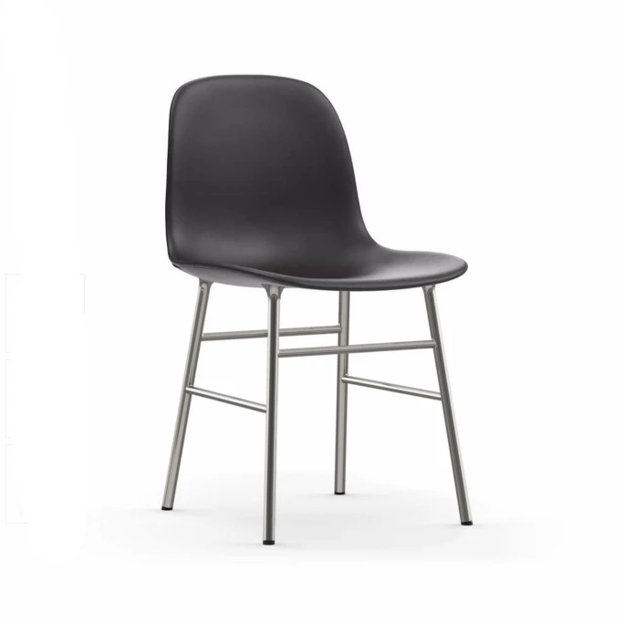 Beeindrucken Sie Ihre Gäste mit den skandinavischen gepolsterten Normann Copenhagen Form Chair Stühlen. Der nahtlose & formvollendete Look der Form Stühle wurde designt vom dänischen Designer Simon Legald. Er schaffte eine Liaison aus robustem, gepolstertem Hartplastik, aus welcher die Sitzschale des Form Stuhls ist, und einem klassischen, vierbeinigen Unterbau aus verchromtem Stahl. Dadurch wird beim Normann Copenhagen Form Chair Chrome Stuhl ein leichter Kontrast zwischen Sitzschale und Stuhlbeinen gesetzt, der verchromt sehr nordisch & puristisch wirkt. Der Designer-Stuhl Normann Copenhagen Form Chair bietet einen hervorragenden, ergonomischen Halt für den Rücken und viel Freiraum für Ihre Füße. Durch all diese Facetten sind die Stühle der Form-Serie wahre Tausendsassa. Der Normann Copenhagen Form Chair Chrome Stuhl kann sowohl als Bürostuhl, Esszimmerstuhl oder Beistellstuhl eingesetzt werden.