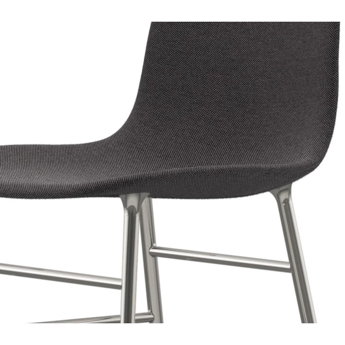 Beeindrucken Sie Ihre Gäste mit den skandinavischen gepolsterten Normann Copenhagen Form Chair Stühlen. Der nahtlose & formvollendete Look der Form Stühle wurde designt vom dänischen Designer Simon Legald. Er schaffte eine Liaison aus robustem, gepolstertem Hartplastik, aus welcher die Sitzschale des Form Stuhls ist, und einem klassischen, vierbeinigen Unterbau aus verchromtem Stahl. Dadurch wird beim Normann Copenhagen Form Chair Chrome Stuhl ein leichter Kontrast zwischen Sitzschale und Stuhlbeinen gesetzt, der verchromt sehr nordisch & puristisch wirkt. Der Designer-Stuhl Normann Copenhagen Form Chair bietet einen hervorragenden, ergonomischen Halt für den Rücken und viel Freiraum für Ihre Füße. Durch all diese Facetten sind die Stühle der Form-Serie wahre Tausendsassa. Der Normann Copenhagen Form Chair Chrome Stuhl kann sowohl als Bürostuhl, Esszimmerstuhl oder Beistellstuhl eingesetzt werden.