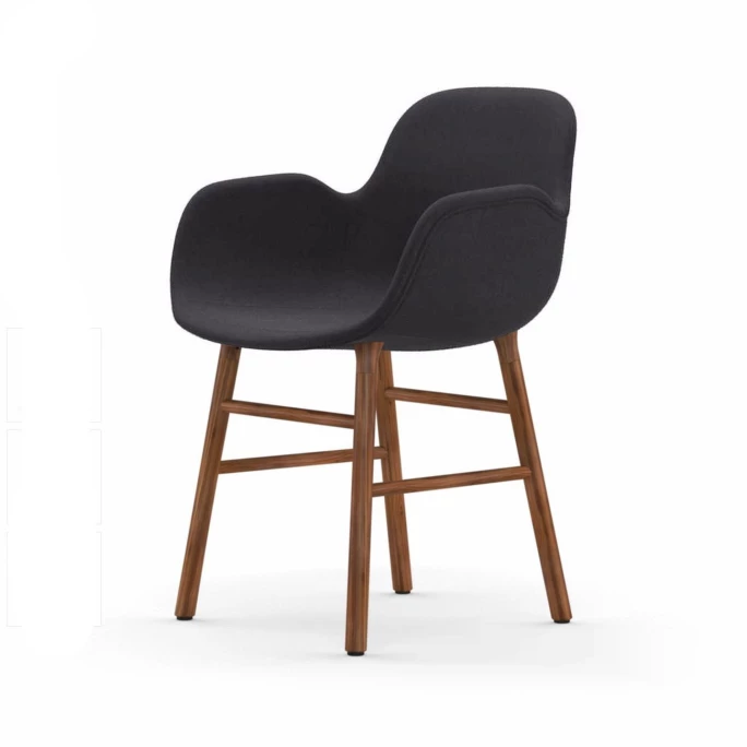 Beeindrucken Sie Ihre Gäste mit den skandinavischen gepolsterten Normann Copenhagen Form Chair Stühlen inklusive komfortablen Armlehnen. Der nahtlose & formvollendete Look der Form Stühle wurde designt vom dänischen Designer Simon Legald. Er schaffte eine Liaison aus robustem, gepolstertem Hartplastik, aus welcher die Sitzschale des Form Stuhls ist, und einem klassischen, vierbeinigen Unterbau aus natürlichem, dunklem Walnussholz. Dadurch wird beim Normann Copenhagen Form Chair Walnut Stuhl dank seiner hölzernen Beine ein leichter Kontrast zwischen Sitzschale und Stuhlbeinen gesetzt, der dank des Holzes sehr nordisch & puristisch wirkt. Der Designer-Stuhl Normann Copenhagen Form Chair Walnut bietet einen hervorragenden, ergonomischen Halt für den Rücken und viel Freiraum für Ihre Füße. Durch all diese Facetten sind die Stühle der Form-Serie wahre Tausendsassa. Der Normann Copenhagen Form Chair Walnut Stuhl kann sowohl als Bürostuhl, Esszimmerstuhl oder Beistellstuhl eingesetzt werden.