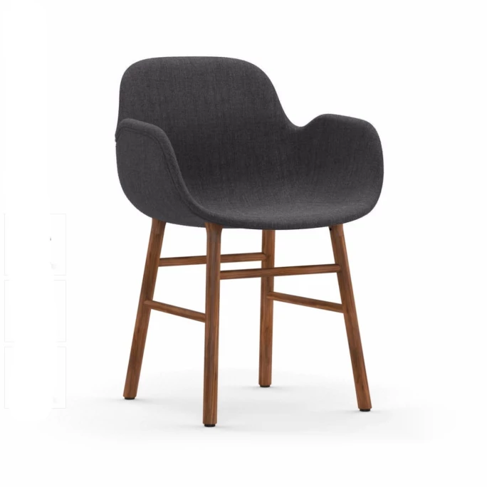 Beeindrucken Sie Ihre Gäste mit den skandinavischen gepolsterten Normann Copenhagen Form Chair Stühlen inklusive komfortablen Armlehnen. Der nahtlose & formvollendete Look der Form Stühle wurde designt vom dänischen Designer Simon Legald. Er schaffte eine Liaison aus robustem, gepolstertem Hartplastik, aus welcher die Sitzschale des Form Stuhls ist, und einem klassischen, vierbeinigen Unterbau aus natürlichem, dunklem Walnussholz. Dadurch wird beim Normann Copenhagen Form Chair Walnut Stuhl dank seiner hölzernen Beine ein leichter Kontrast zwischen Sitzschale und Stuhlbeinen gesetzt, der dank des Holzes sehr nordisch & puristisch wirkt. Der Designer-Stuhl Normann Copenhagen Form Chair Walnut bietet einen hervorragenden, ergonomischen Halt für den Rücken und viel Freiraum für Ihre Füße. Durch all diese Facetten sind die Stühle der Form-Serie wahre Tausendsassa. Der Normann Copenhagen Form Chair Walnut Stuhl kann sowohl als Bürostuhl, Esszimmerstuhl oder Beistellstuhl eingesetzt werden.