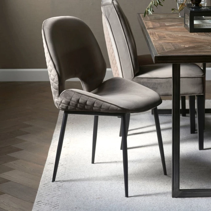 Sie mögen industrielles Design mit elegantem Charme? Dann ist der Mr. Beekmann Esszimmerstuhl von Rivièra Maison genau der Richtige für Sie! Das dezent gestaltete Eisengestell verleiht dem schicken Stuhl einen industriellen Touch, während der weiche Samtbezug für einen edlen Look sorgt. Die besondere Formgebung und die gesteppten Außenseiten runden das optische Gesamtbild von Mr. Beekman dabei perfekt ab. Egal ob im Esszimmer, in der Küche oder als zusätzliche Sitzgelegenheit: Der Rivièra Maison Esszimmerstuhl sieht einfach überall gut aus und sorgt durch seine leicht konkave Sitzfläche für einen bequemen Sitzkomfort. Kombinieren Sie doch einfach die verschiedenen Stoffe und Farben der Mr. Beekmann Esszimmerstühle miteinander und kreieren so im Handumdrehen ein stilvolles Ambiente in Ihrem Ess-, Küchen- oder Wohnbereich – Sie werden begeistert sein!